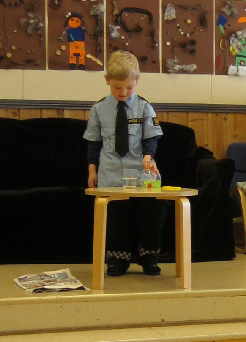Etter felles samling på Kardemommeby gikk vi inn til Hakkebakkeskogen for å spise pølser og drikke saft. Stor stemning under måltidet og alle måtte stå i ekte pølsekø for å få mat.