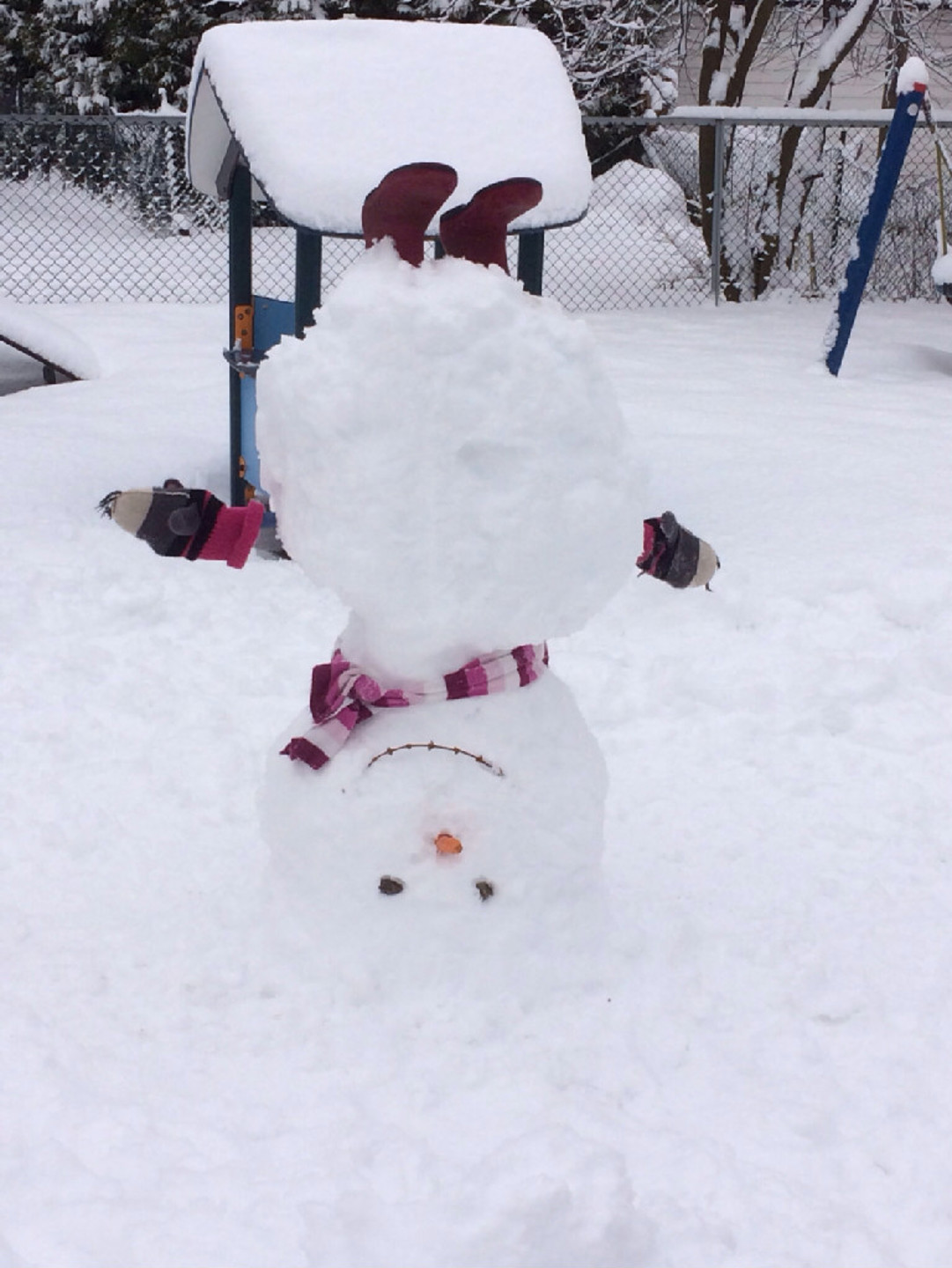 I vinter har det kommet masse lett og luftig snø, men dessverre lite egnet til å lage snømann.. På fredag dalte det ned store kramme snøfiller og vi var ikke sene om å benytte sjansen.